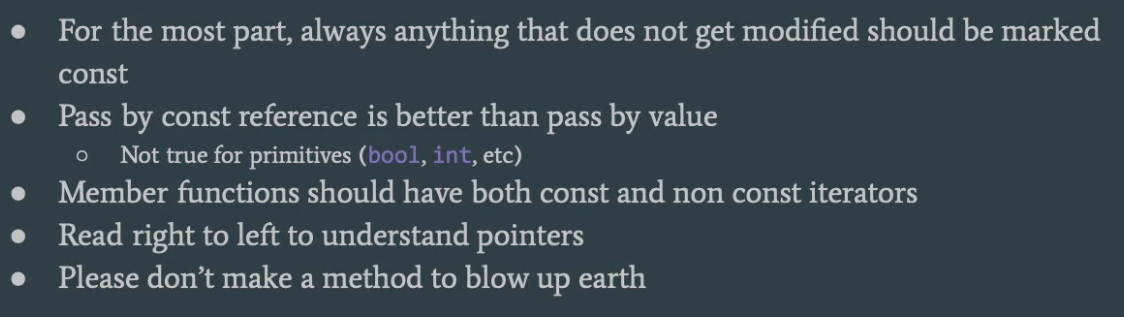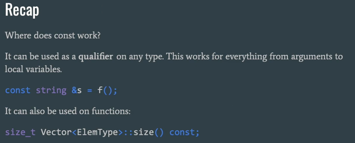 Any non-primitive types, we always want to use reference, the const is important in this case.