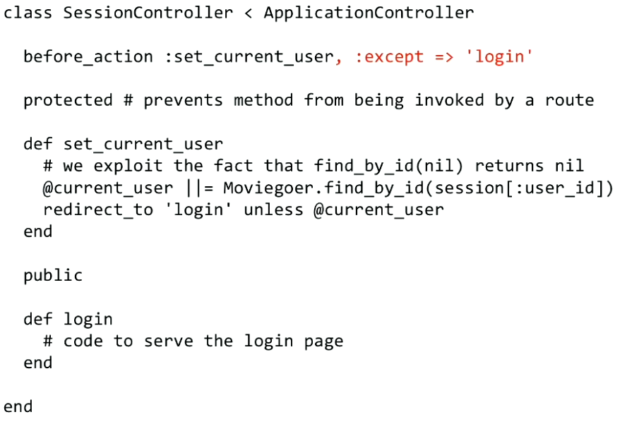 NOTE: Use :only and :except symbol to specify the action you want to filter.