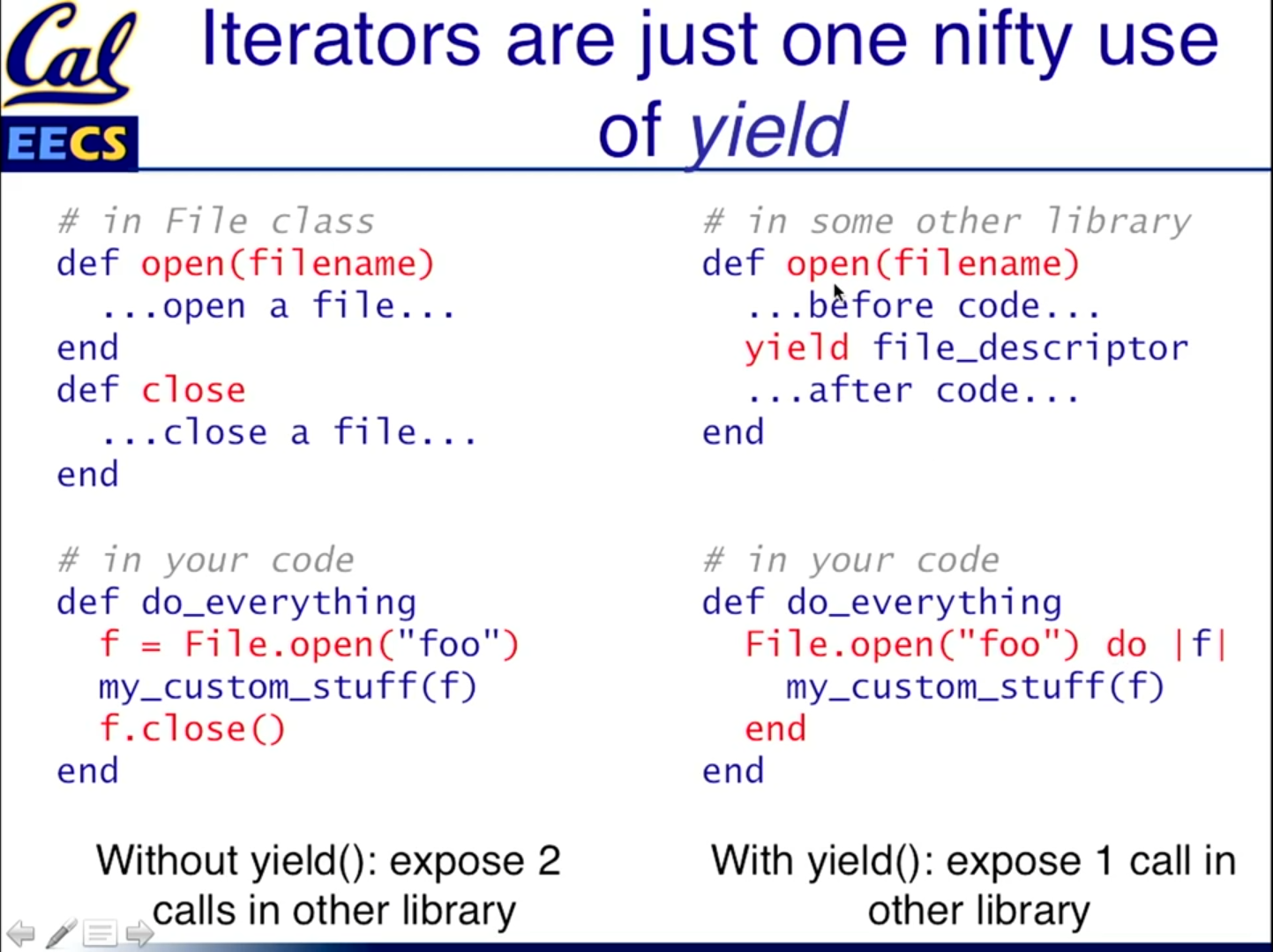 yield means transfer the control back to the thing that called me because it has a block waiting for me.