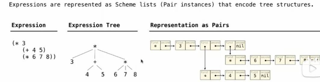 Scheme expression are represented as Scheme lists! (Data representation equals to the source code representation: Homoiconic)