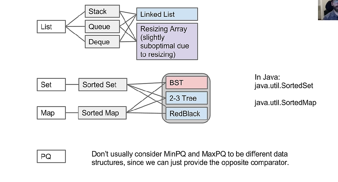 ADTs and its Implementation Data Structure 也就是,这些抽象数据结构,是一种带有规则的特定数据组织形式,不止一种实现方式,而每种实现方式,也是一种数据组织方式,为了实现其规则,底层代码实现也不尽相同。