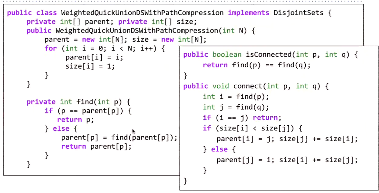 Improvement: That is: when we link two tree, the depth of the node of tree incorporated will increase one. So what we need to do is incorporate the smaller one, lessening the increase of depth.