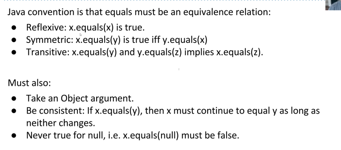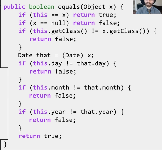 toString(__str__,__repr__) .equals() reference check null check class check cast all the fields check Rules