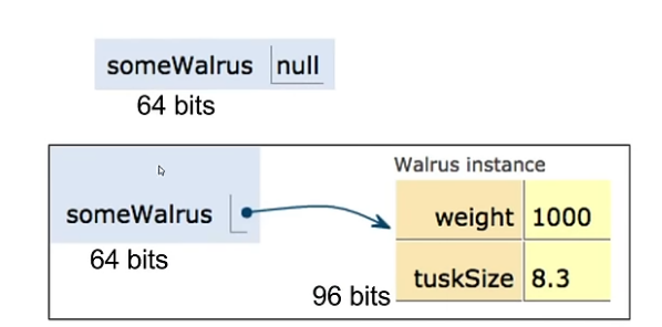 When we declare a variable of any reference type (Walrus, Dog, Planet):