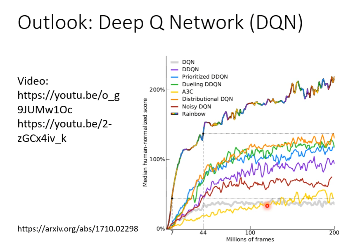 其实随机性对于 RL 是非常重要的。因为假如没有随机性,可能有一些行为从来没有被采取过,机器也从来不知道这样是好还是不好,导致 train 不起来。所以我们有时甚至要加大随机性,例如通过增加 Entropy、给 Actor 的 parameter 增加噪音等。让模型充分探索可以采取的行为。