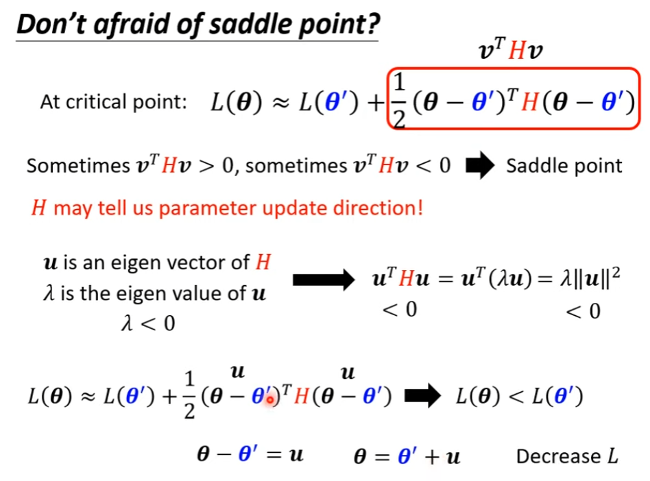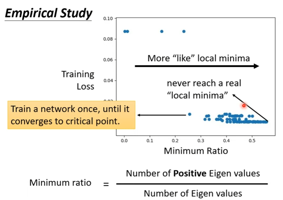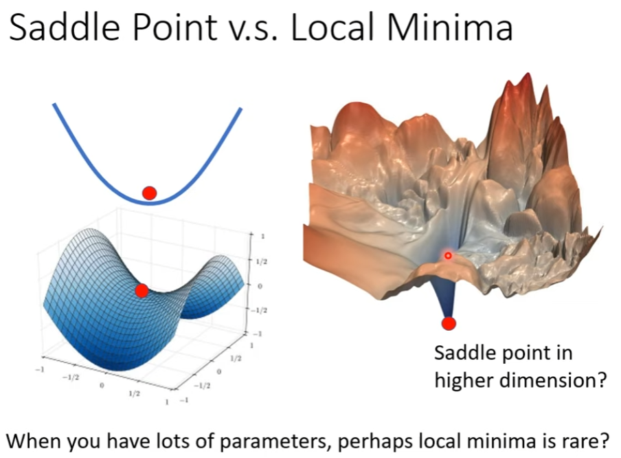 Yes! 实际 Local Minima 并没有那么常见,很多时候我们是卡在了一个 Saddle Point