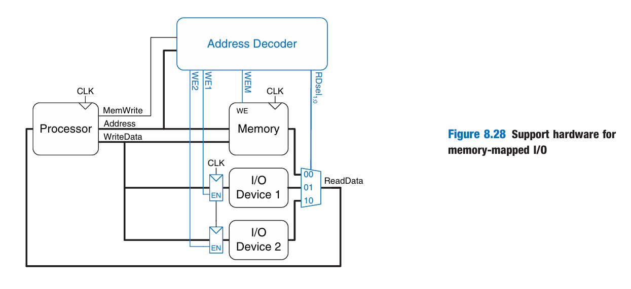 - 统一编址方式:存储器地址与I/O地址统一考虑,地址空间的一部分是存储器,另一部分是I/O,支持存储器操作的指令都可用于I/O操作。(MIPS 采取此种)