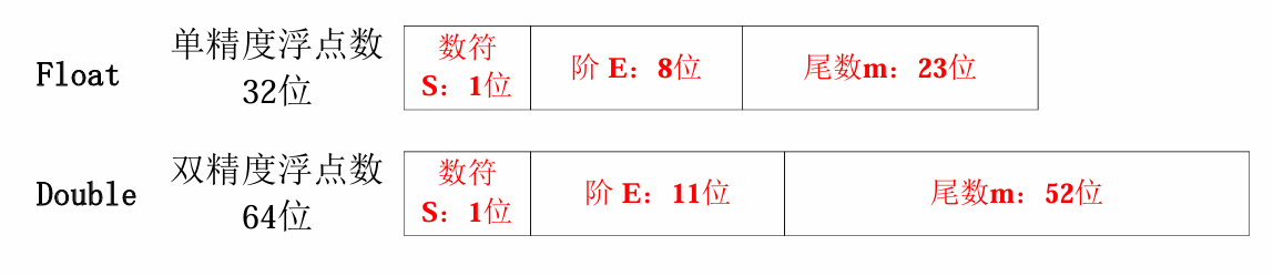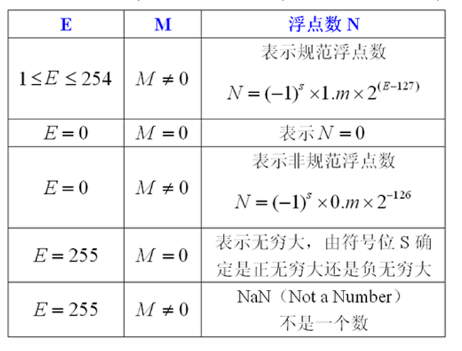 - 尾数 M:采用定点小数表示,尾数必须规格化成小数点左侧一定为1,并且小数点前面这个1作为隐含位被省略。这样单精度浮点数尾数实际上为24位。