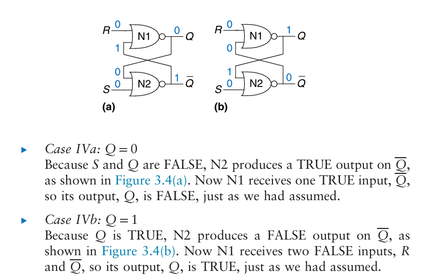 R = S = 0时,输出保持初值不变;Set将Q置1,Reset将Q置0。