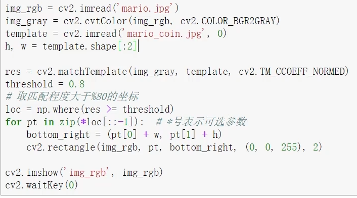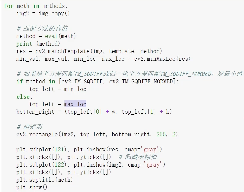 res = cv2.matchTemplate(img, template, cv2.TM_SQDIFF)找到最佳匹配: